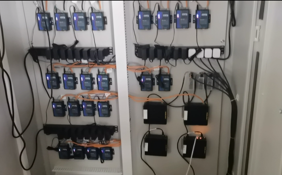 當(dāng)前是串口服務(wù)器采集表計(jì)數(shù)據(jù),將表計(jì)數(shù)據(jù)傳輸至現(xiàn)場配電柜內(nèi)工控機(jī),工控機(jī)與服務(wù)器網(wǎng)絡(luò)連接;直接將表計(jì)與通訊一分二模塊連接,通過現(xiàn)場網(wǎng)線與安裝在服務(wù)器機(jī)房的本地服務(wù)器連接,將數(shù)據(jù)采集至本地服務(wù)器;實(shí)現(xiàn)本地服務(wù)器與云平臺連接。