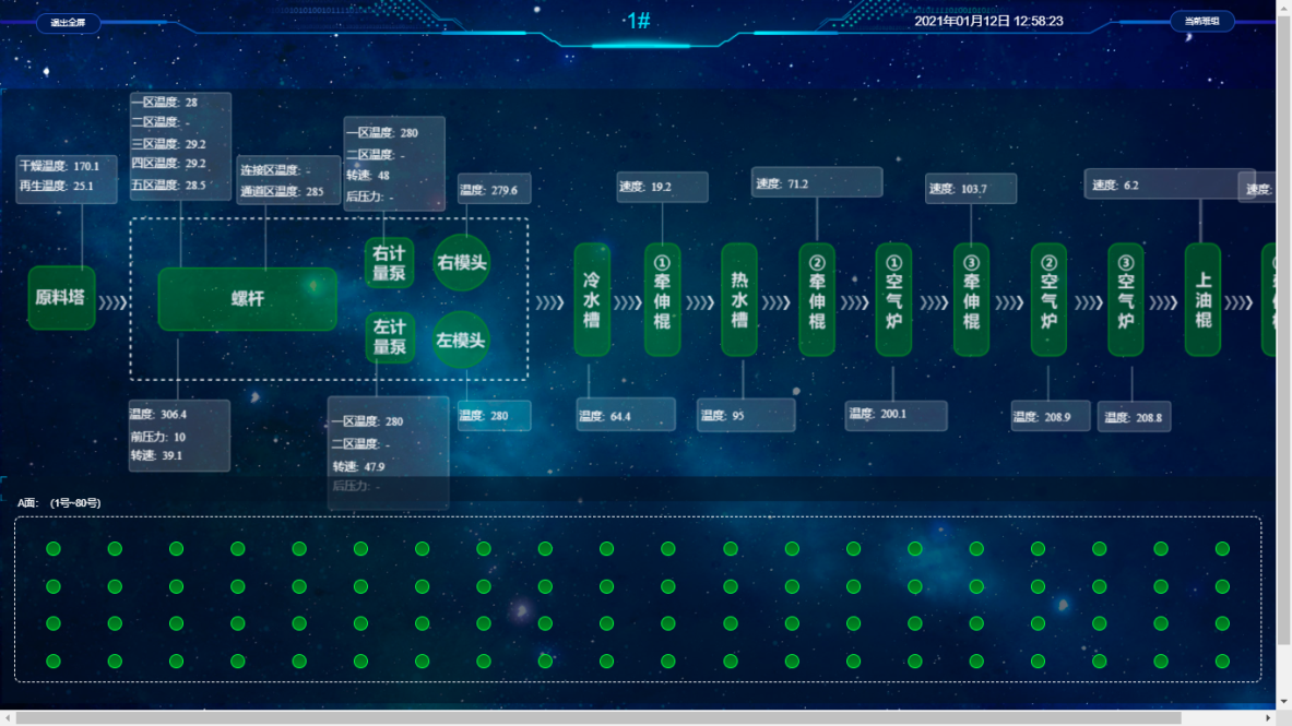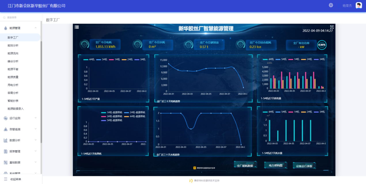 第一,打造了新華膠絲廠能源數(shù)字工廠。通過能耗在線監(jiān)測系統(tǒng)實(shí)現(xiàn)對新華膠絲廠生產(chǎn)過程中能源消耗進(jìn)行監(jiān)測和生產(chǎn)批次管理數(shù)據(jù)對接,實(shí)時(shí)顯示新華膠絲廠4條生產(chǎn)線能耗、單耗等數(shù)據(jù),組態(tài)化大屏形式展示關(guān)注的能源指標(biāo),實(shí)現(xiàn)獨(dú)立靈活自適配,符合各種生產(chǎn)實(shí)際場景需求。任意關(guān)鍵數(shù)據(jù)指標(biāo)適配;豐富圖表、設(shè)備組件;配置靈活,即時(shí)生效,靈活調(diào)整;實(shí)時(shí)業(yè)務(wù)指標(biāo)、視頻監(jiān)控融合。