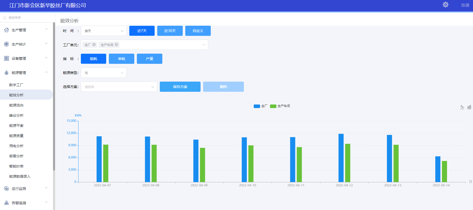 新華膠絲廠能效分析具有強(qiáng)大的歷史能耗數(shù)據(jù)追溯和分析功能,多維度分析企業(yè)不同生產(chǎn)區(qū)域/設(shè)備的能耗、能效水平及產(chǎn)量,可隨時(shí)查看某個(gè)區(qū)域/設(shè)備、時(shí)間、班組的能耗、能效、產(chǎn)量波動(dòng)情況,通過動(dòng)態(tài)的圖形顯示,快速了解是否有異常情況,從而對生產(chǎn)、管理、工藝及時(shí)進(jìn)行指導(dǎo)和調(diào)整,使新華膠絲廠生產(chǎn)過程的單位能耗和能源效率保持在科學(xué)、合理水平。