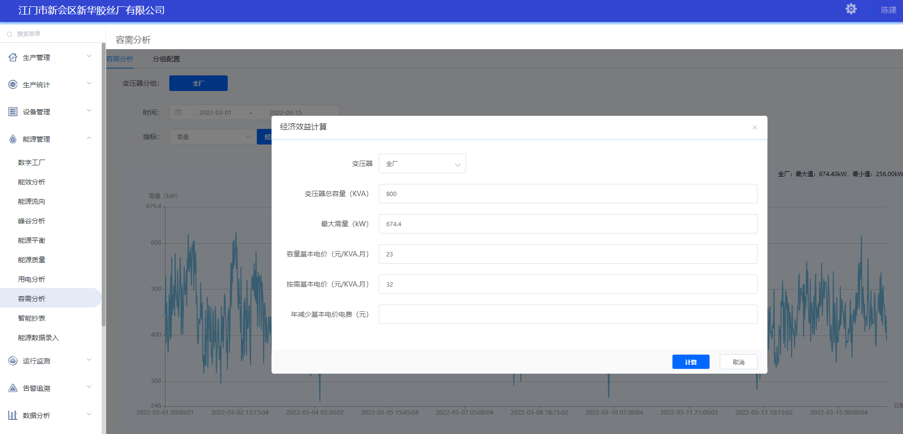 根據(jù)新華膠絲廠實(shí)際變壓器申報(bào)情況進(jìn)行分組配置,通過統(tǒng)計(jì)計(jì)算變壓器分組負(fù)載率閾值區(qū)間范圍,得出最大容量,進(jìn)行經(jīng)濟(jì)效益計(jì)算,數(shù)據(jù)分析得出新華膠絲廠按需申報(bào)可以節(jié)省的基本電價(jià)電費(fèi)。