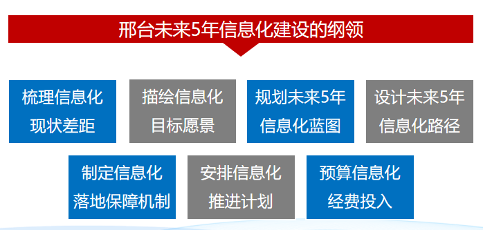主要結合政府對邢臺智慧化愿景的初步設想,闡述城市信息化現狀與需求,規劃邢臺智慧城市建設目標,并將目標進行層層細化、拆解,針對每個細化目標規劃、設計相應的建設內容和實施路徑,明確相關信息技術手段及相關資源要素等內容。