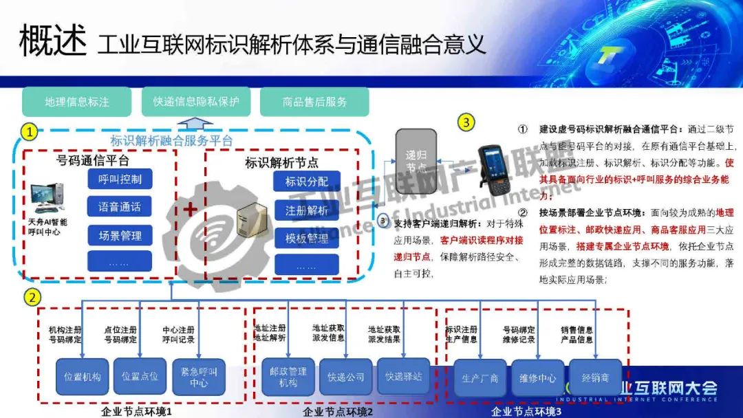 孫大成介紹,工業互聯網標識作為統一的“身份證號”,同時又具備呼叫功能,解決行業管理所面臨的問題,并拓展和挖掘出更加多樣的創新業務模式。 虛號碼已廣泛應用于政府、企業、教育、電商、保險、物流、家庭等各種領域和行業,與工業互聯網標識解析的融合,可以發揮標識解析跨領域信息共享的優勢,延伸業務鏈條、建立更為廣泛服務體系,將與標識解析體系融合,可為虛號碼原有標注對象分配唯一的“身份證號”, 使其具備國家自主可控、安全穩定的信息解析通道。