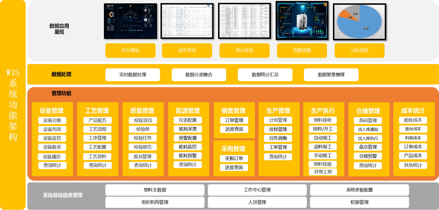 (4)企業電能能耗無法準確有效的分攤到銷售訂單、產品、設備等,只能統計所有加工設備電能,憑經驗分攤。物料消耗、廢絲等成本無法有效的與人/設備/訂單等進行精細化的成本管理。