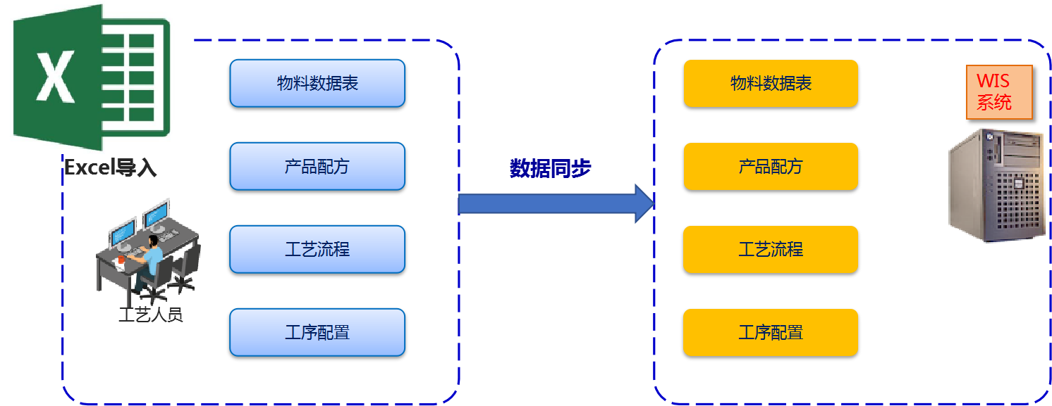 通過將膠絲物料數據、產品配方、產品工藝流程及工序信息,導入到WIS系統中,通過工序配置生產中各自動化線設備及設備工藝參數、料耗、準備時長、質量信息、包裝規格等,為WIS計劃排程、生產加工過程控制、設備工藝參數質量控制、生產車間物料流轉、產品質量檢驗提供數據支撐。