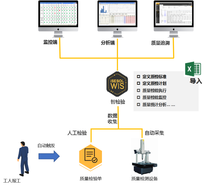 通過應用iSESOL WIS質量管理服務實現了完整的質量管理流程及質檢過程數據采集,正向反向質量追溯,人員、設備、產品良品率實時統計與監控。同時基于多樣的質量數據統計(看板、報表等),為質量管理提供決策數據支撐,及時應對控制質量問題,有效提升產品質量,降低產品不良率至2%。